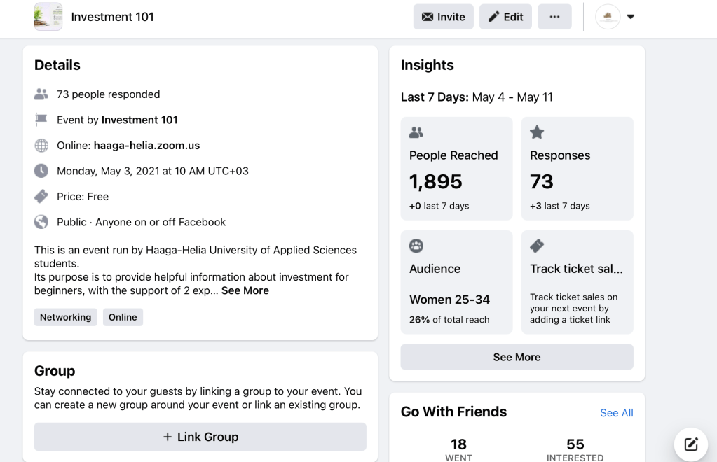 This webinar served as a course project led by students from Haaga-Helia University of Applied Sciences (Team 1). Designed to equip beginners with practical investment knowledge, the event showcased advice from two industry experts. Primarily promoted through a Facebook event, the webinar was hosted on Zoom.